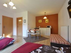 Każdy pokój posiada aneks kuchenny (kuchenka mikrofalowa, lodówka, czajnik elektryczny, sztućce, naczynia ), łazienkę, TV, Internet oraz osobne wejście (także tarasowe w dwóch pokojach).